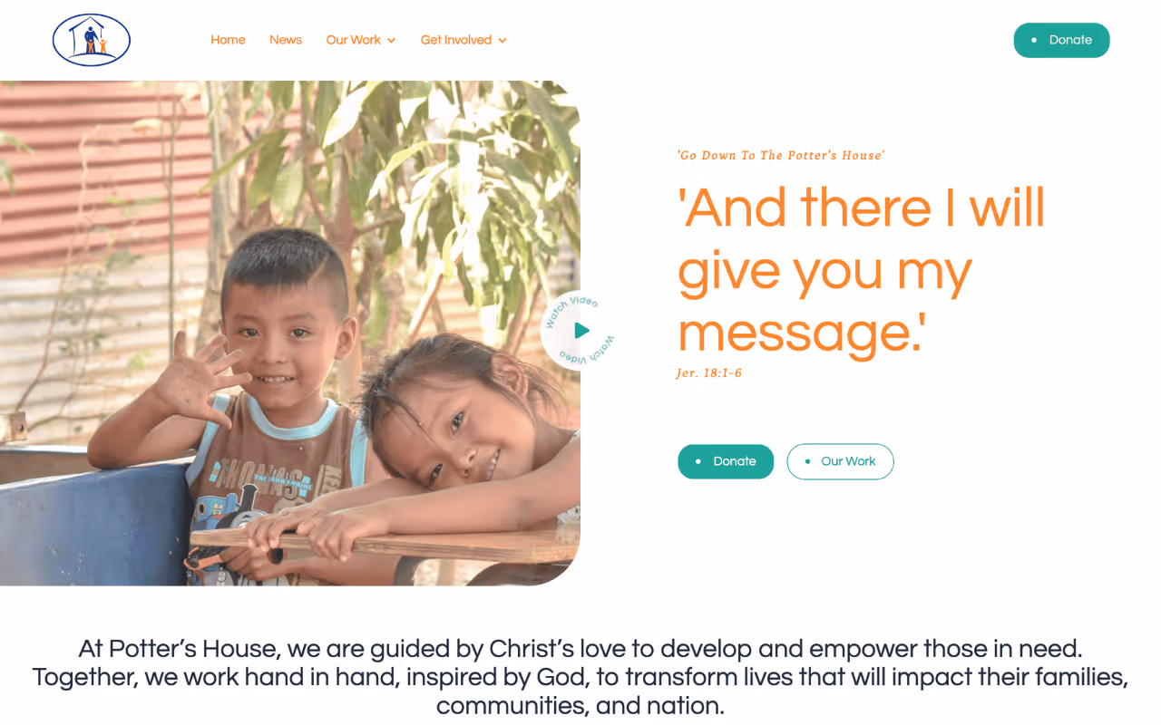Potter’s House Guatemala is a Christ-centered nonprofit serving families living in extreme poverty across the country. With decades of impact, they needed a digital platform that could tell their story clearly, support donations, and scale with their growing reach.